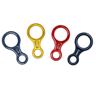 Descensor clásico en forma de ‘8’. Ideal para el uso en descenso con cuerda doble, cuerda simple y en rápel.
