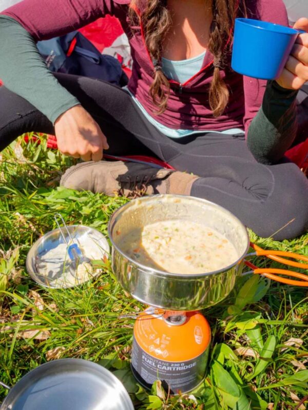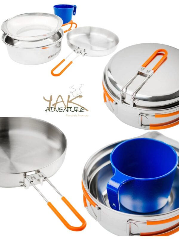 El kit está completamente equipado: sartén de 6.3″ con asa plegable, olla de 1 L, tazón, taza y bolsa de transporte, pero se compacta para viajes compactos. Si acampas mucho y valoras un rendimiento duradero, elige el Glaciar.